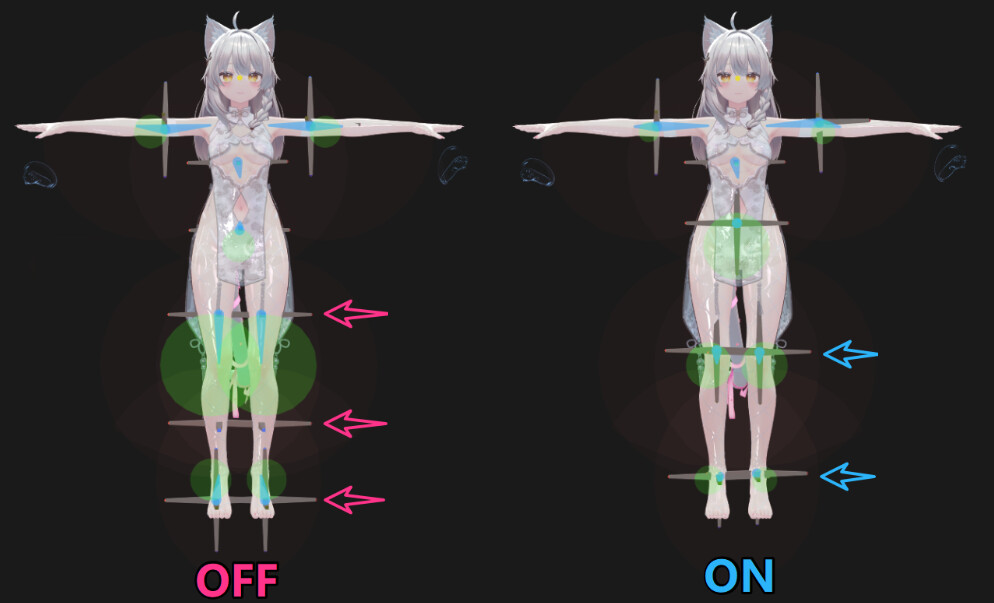Even when the avatar and the white spheres are almost perfectly aligned during calibration in VRChat, the issue still occurs.